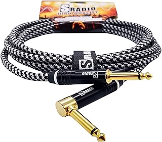 SRADIO Gitarren-Instrumentenkabel 6 m, AMP-Kabel rechtwinklig 1/4 Zoll TS auf gerade 1/4 Zoll TS Gitarrenkabel 6 m mit weißem Tweed-Tuch für E-Gitarre, Bass,Tastatur