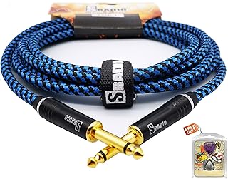 SRADIO Gitarren-Instrumentenkabel, 3 m, AMP-Kabel, gerade 1/4 Zoll TS auf gerade, 1/4 Zoll TS Gitarrenkabel 3 m mit blauem Tweed-Tuch für E-Gitarre, Bass, Keyboard