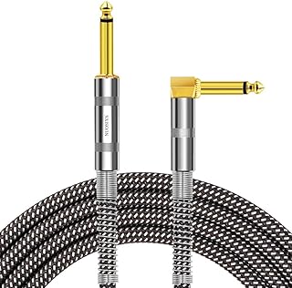 NUOSIYA Professionelles Gitarrenkabel, 6,35 mm, Mono-Klinkenstecker, geflochten, gerade auf rechtwinkliges Gitarrenkabel (grau/weiß/3 m)