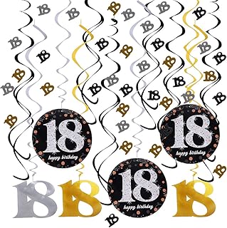 JNCH 18th Geburtstag Deko Set 18 Teile Spiralen Hängedekoration Girlande Deckenhänger Wirbel Geburtstag Konfetti für Mädchen und Jungen 18 Jahre alt Schwarz Gold