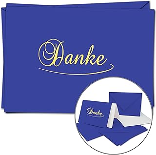 20 Dankeskarten im Set - DIN A6 - Danke Komplett-Set aus Doppelkarte & Umschläge & Einleger, stilvolle & Schlichte Danksagung - Royal-Blaue Karten und Hüllen mit Gold-metallic Schrift