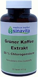 Grüner Kaffee Extrakt, 50 % Chlorogensäure, 120 Kapseln, 300 mg., Reinsubstanz ohne Zusatzstoffe, vegetarische Kapselhülle, deutsche Produktion