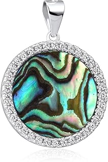 Anhänger Silber Muschel, Kettenanhänger, Motiv Sonnenspirale, mit Abalone Muschel aus 925% Sterling Silber gearbeitet, inklusiv Halsband, Geschenk, Freundschaft