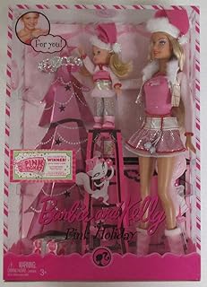Barbie 2008 Pink Holiday Series 2 Pack Doll Set - Barbie and Kelly in Holiday Outfits Plus Bonus Bracelet Just For You (P9341) by Barbie
