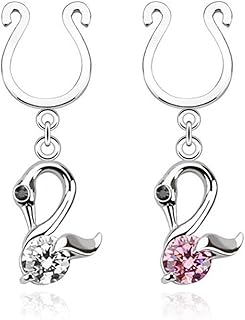 Fake Brustwarzen-Piercing Schwan Brustpiercing Frau Maenner Intimpiercing Mann Nippelpiercing Clip Zirkonia Clear Pink Edelstahl Chirurgenstahl 316L