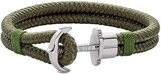 Anker Armband PHREP - Segeltau Armband in Olive, Armband mit Anker Schmuck aus Edelstahl (Silber) in Größe XXXL