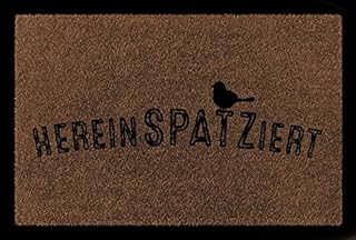 Interluxe TÜRMATTE Fußmatte HEREINSPAZIERT Vogel Willkommen Flur Eingang Einzug Geschenk Braun