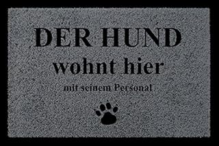 Interluxe FUSSMATTE Schmutzmatte DER Hund WOHNT Hier Tierisch Spruchmatte 60x40cm Haustier Dunkelgrau