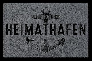 Interluxe TÜRMATTE Fußmatte Heimathafen Maritim Eingang Einzug Flur Badezimmer Türvorleger Dunkelgrau