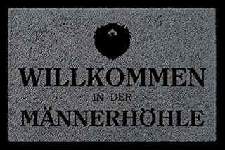 Interluxe FUSSMATTE Türmatte WILLKOMMEN IN DER MÄNNERHÖHLE Mann Geschenk WG Einzug Flur Dunkelgrau