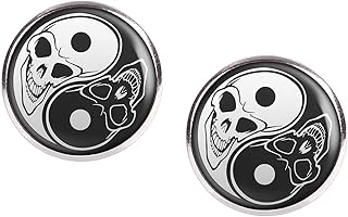 Ohrstecker Paar mit Motiv Yin Yang Schwarz Weiß Toten-Kopf silber verschiedene Größen