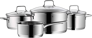 WMF Profima Topfset Induktion 5-teilig, Kochtopf Set mit Glasdeckel, Cromargan Edelstahl poliert, Induktions Töpfe Set unbeschichtet