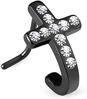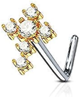 | Nasen Piercing Stecker Gebogen Edelstahl Chirurgenstahl 316L Zirkonia Kreuz Versch.Farben