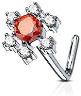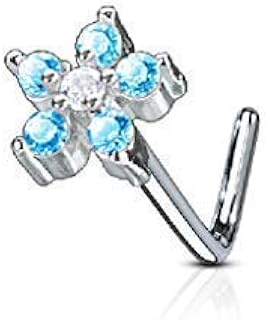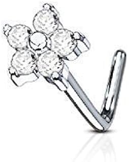| Nasenpiercing L Stecker Gebogen Chirurgenstahl 316L Silber 6mm Zirkonia Blume Klar-Transparent,Pink,Aqua