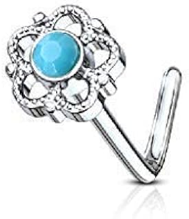 | Nasenpiercing L Stecker Gebogen Chirurgenstahl 316L Silber,Gold,RoséGold 6mm Halbedelstein Türkis Antik Floral