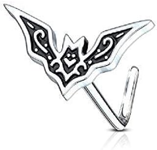 | Nasenpiercing L Stecker Gebogen Chirurgenstahl 316L Silber 6mm Fledermaus Schwarz