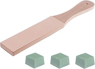 Leder Schleifwerkzeuge Doppelseitiger Streichblock mit Grünen Polierpaste Multifunktion Leder Schleifwerkzeuge Schleifwerkzeug Aus Leder mit Holzgriff für Küchengeräte Basteln Schnitzen DIY Werkzeuge