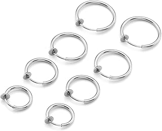 8x 1.6mm Fake Nasenpiercing Chirurgenstahl Fake Piercing Ring Klemmring Sping Piercing für Septum Tragus Helix Nase Lippe Ohr Unisex Punk, Silber/Gold/Schwarz/Rosegold