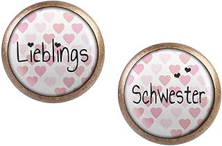 Ohrstecker Paar mit Motiv Lieblings-Schwester Geschwister bronze verschiedene Größen