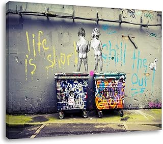 AGCary Banksy Wanddekoration, bunte Straßen-Graffiti-Posterdruck, Ölgemälde, Leinwand-Reproduktion, fertig zum Aufhängen, 40,6 x 30,5 cm ( Life is short chill the Duck out ), gerahmt