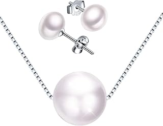 Damen Halskette Kette mit Perlen Anhänger Ohrstecker Ohrringe Piercing Ohrhänger 925 Sterling Silber Box Kette Schmuck Set für Frauen Mädchen