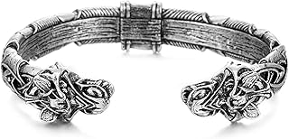 QKFON Armband im Wikinger-Stil, der große Fenrir, handgefertigt, Legierung, Doppel-Drachenkopf-Armband, Modeschmuck für Männer und Frauen