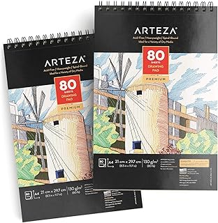 Arteza Zeichenblock A4 2er-Pack, Skizzenblock mit Spiralbindung je 80 Blatt, weißes Zeichenpapier 130 g/m², Künstler Malblock für Profis und Anfänger