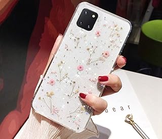 Herbests Kompatibel mit Samsung Galaxy Note 10 Lite Hülle Getrocknete Blumen Glänzend Bling Glitzer Handyhülle Transparent Silikon Weich Ultra Dünn TPU Schutzhülle Crystal Case Stoßfest Tasche,Rosa