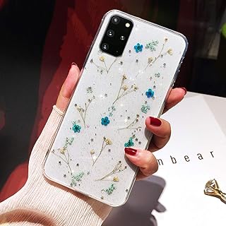 Herbests Kompatibel mit Samsung Galaxy S20 Plus Hülle Getrocknete Blumen Glänzend Bling Glitzer Handyhülle Transparent Silikon Weich Ultra Dünn TPU Schutzhülle Crystal Case Stoßfest Tasche,Blau