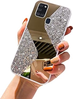 Herbests Kompatibel mit Samsung Galaxy A21S Hülle Mirror Case Spiegel Handyhülle Glänzend Glitzer Diamant Strass Bling Silikon TPU Bumper Stoßfest Schutzhülle für Mädchen Männer,Silber