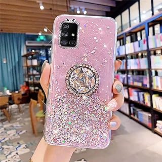 Herbests Kompatibel mit Samsung Galaxy A71 Hülle Mädchen Bling Diamant Glänzend Glitzer Stern Schutzhülle Ultra Dünn Weich Silikon Durchsichtig Handyhülle Case mit Ring Ständer Halter,Rosa