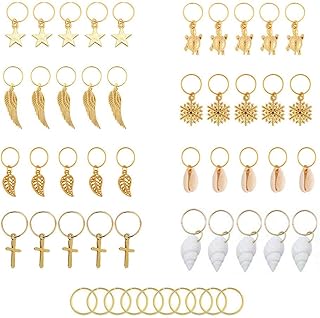 50 Stück Haarnadel Ring Haarnadel Clip Gold Ring Shell Leaf Star Anhänger Ring Set, Ring Metall Stirnband Kupfer Haare Flechten und Anhänger Charme Haarspange Kopfbedeckungen Zubehör (Gold)