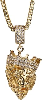 Herren Löwe Halskette mit Anhänger Gold King Krone Löwe Kopf Anhänger Punk Rock Biker Edelstahl Zirkonia Anhänger Goldketten 56cm