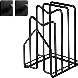 Hikinlichi Schneidebrett-Regal mit 2 selbstklebenden Haken, Küchenarbeitsplatte, Schneidebrett-Organizer, Ständer, Halterung, Töpfe, Pfannendeckel, 12 cm L x 14 cm B x 22 cm H, Schwarz