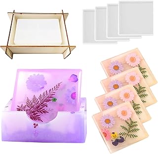 YZNlife DIY Silikonform 4Pcs Untersetzerform, Getränkeuntersetzer Harz Formen Coaster Resin Mold inkl. Aufbewahrungsbox, Resin Untersetzer Casting Formen