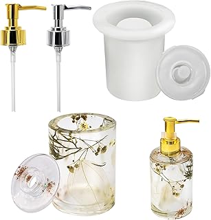 opamoo Silikonform Pumpespender Harz Formen, Epoxidharz Formen,Gießformen Silikonformen, Resin Form Seifenspender Casting Formen mit 2Dosierpumpe, Gießform Silikonform für Lotion,Duschgel(Zylindrisch)