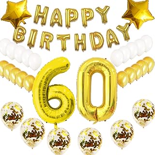 60 jahr Geburtstag Dekoration Luftballons Gold Set,60 jahr Geburtstagsdeko Gold Set Frau damen 60 Geburtstag deko für herren Mann,Happy Birthday gold number 60 Ballon Deko 60 Deko Folienballons