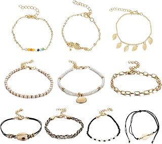 10 Stück Fußkettchen für Damen,Boho-Fußkettchen-Set,Strandfein-Schmuck, Perlen Fußkette, Einstellbar Strand Fußkettchen Fußschmuck Set, Zubehör für Frauen und Mädchen