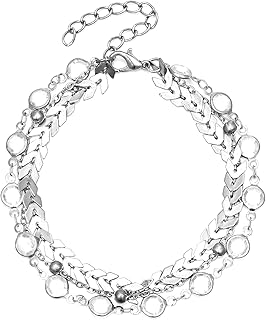 Damen Fußkettchen, Kristallkügelchen, für den Knöchel, Schmuck für Mädchen, Strand oder Urlaub, silber, 15