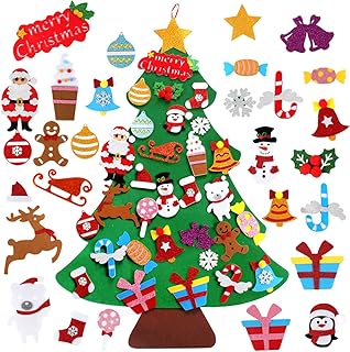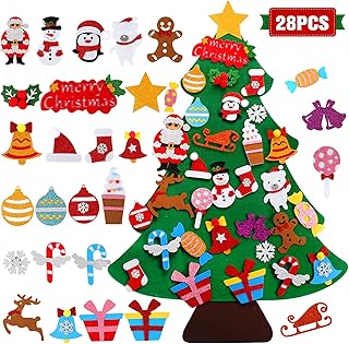 DIY Filz Weihnachtsbaum Dekorationen - 3,3ft Vlies Weihnachtsbaum mit 28 Stück Goldpulver Weihnachtsschmuck Wanddekoration Weihnachtsbaum Geschenke für Kinder Haustür Fenster Weihnachtsdekoration
