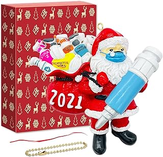 BSTiltion 2021 Weihnachten weihnachtsdeko, Weihnachtsbaum Anhänger mit Hängender Ring, Epidemie-Weihnachtsmann, Der Weihnachtsmann hält einen Impfstoff in der Hand, Weihnachtsschmuck,